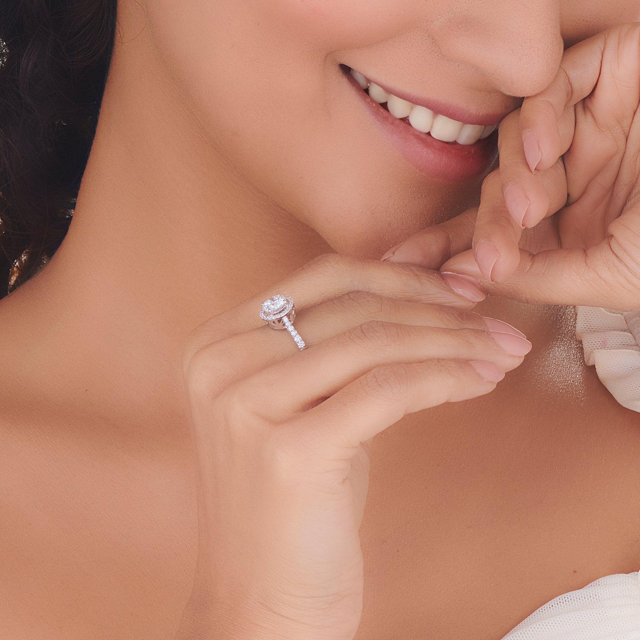 Zen Pirlanta 0.90 cts Round Halo Solitaire Ring