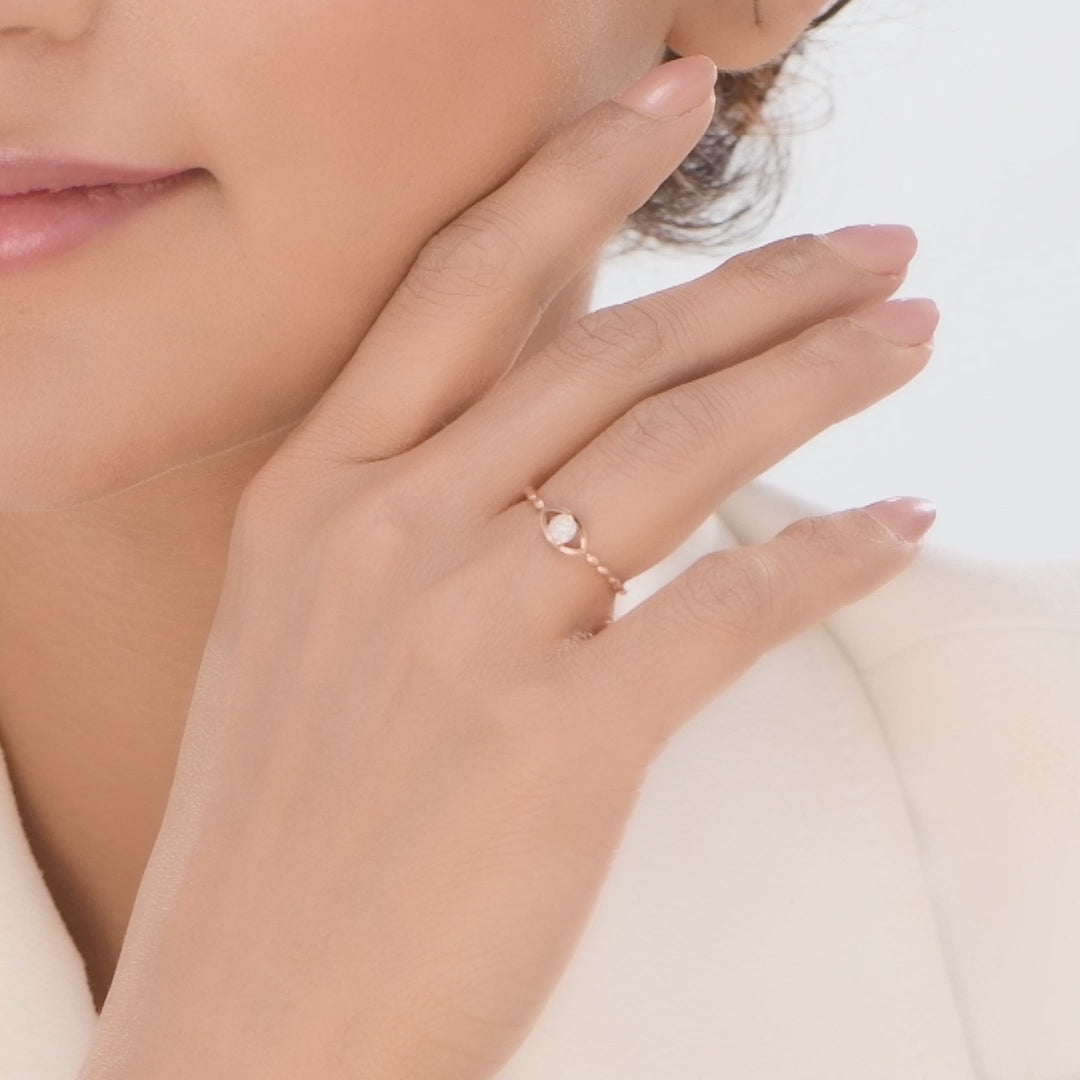 Each piece features a unique detail – a hidden diamond nestled against the wearer's skin. This 0.01 carat diamond is a gift from us to you; a symbol of positivity and timeless beauty, this hidden gem is our special way of connecting with you on a deeper level.
