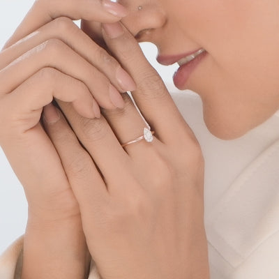 This eye-catching rose gold ring features a unique, teardrop-shaped design with a brilliant mix of baguette and round diamonds. Its vibrant and modern style makes it an excellent choice for everyday wear or for adding a touch of bold elegance to a special occasion.