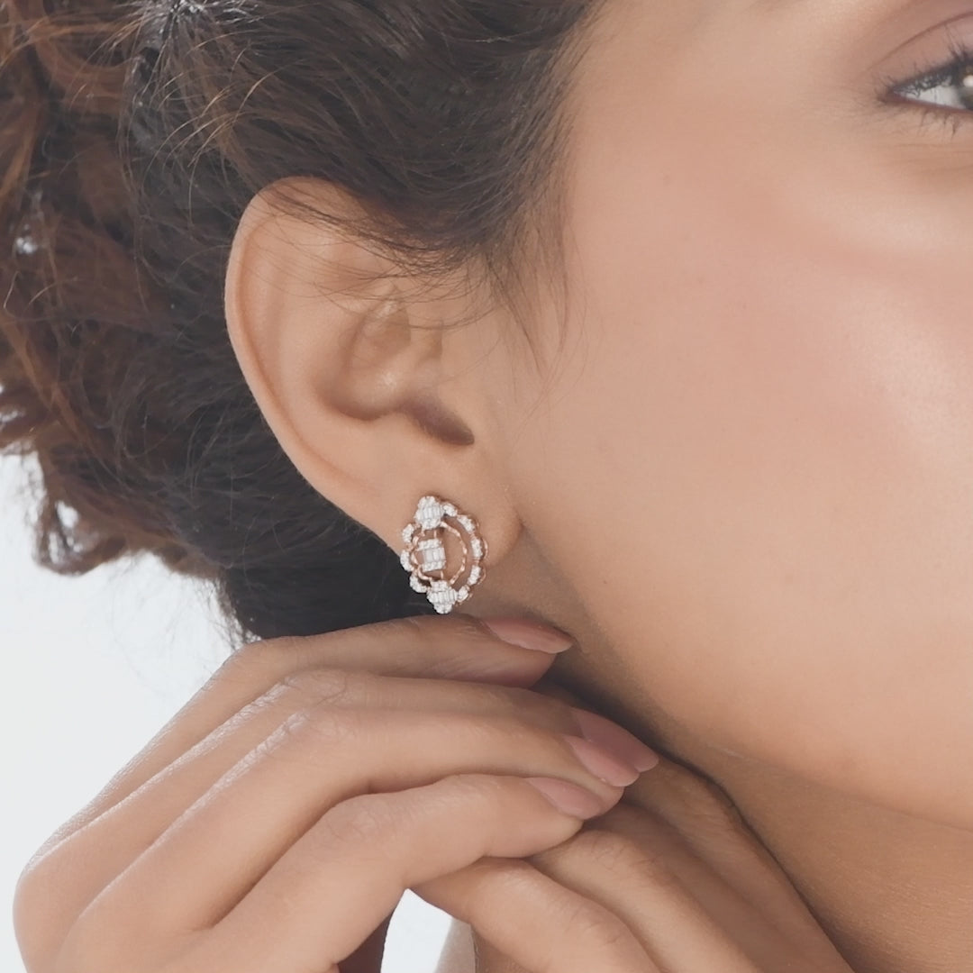 These striking earrings feature a complex, layered setting of brilliant precious stones, delivering an intensely luminous, sophisticated sparkle. They are ideally suited for a formal luncheon, a wedding guest outfit, or adding opulent elegance to a special celebratory event.