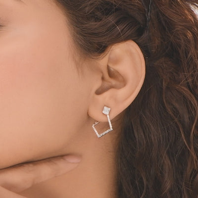 These striking earrings feature graphic, linear arrangements of brilliant precious stones, creating a modern, captivating sparkle. They are the perfect accessory for a gallery opening, a chic business meeting, or adding a stylish, contemporary edge to a dinner party.