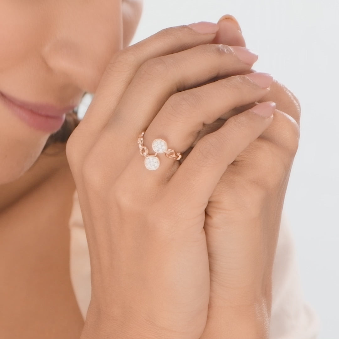 A bold Cuban link ring in rose gold set with natural diamonds that radiate strength and allure. Perfect for parties, date nights, or simply to elevate your everyday mood. Wear it solo for impact or stack it for drama.