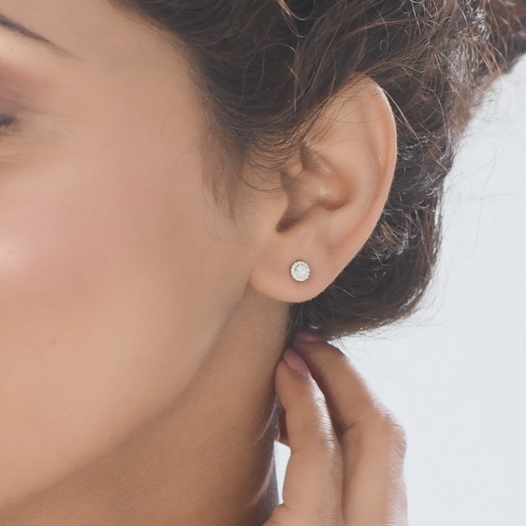 Dazzling round studs featuring a radiant clustered design adorned with shimmering white stones. Perfect for daily elegance, office wear, festive gatherings, and timeless celebratory occasions.