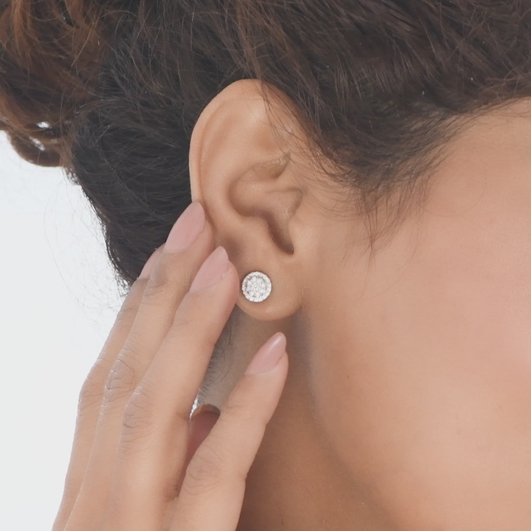 Brilliant double-layered clustered studs set with sparkling white stones, perfect for office elegance, daily wear, festive celebrations, and classic special occasions.