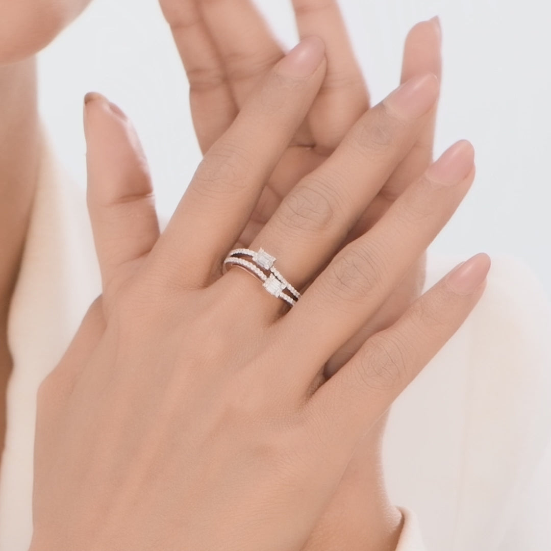 Facet Fusion Classic Rings unite timeless elegance with modern design, featuring intricate diamond settings and luxurious metalwork for a chic, high-end look.