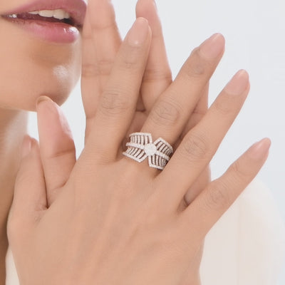 A mesmerizing natural diamond ring featuring a striking V-shaped, wing-like design. Its bold, glittering sparkle makes it the perfect cocktail ring for a gala, anniversary, or any special occasion where you want to make a brilliant statement.
