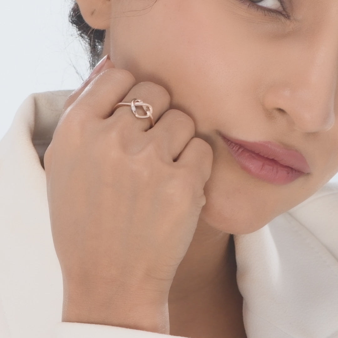 This rose gold love knot ring with natural diamonds celebrates togetherness with effortless charm. A perfect keepsake for milestones and shared moments.