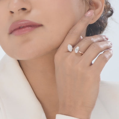 Geometric precision meets smooth contours in this striking ring. Confident yet easy to wear, it’s made for moments when jewelry becomes an extension of strength, independence, and modern grace.