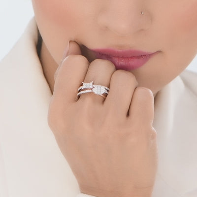 Facet Fusion Classic Rings unite timeless elegance with modern design, featuring intricate diamond settings and luxurious metalwork for a chic, high-end look.
