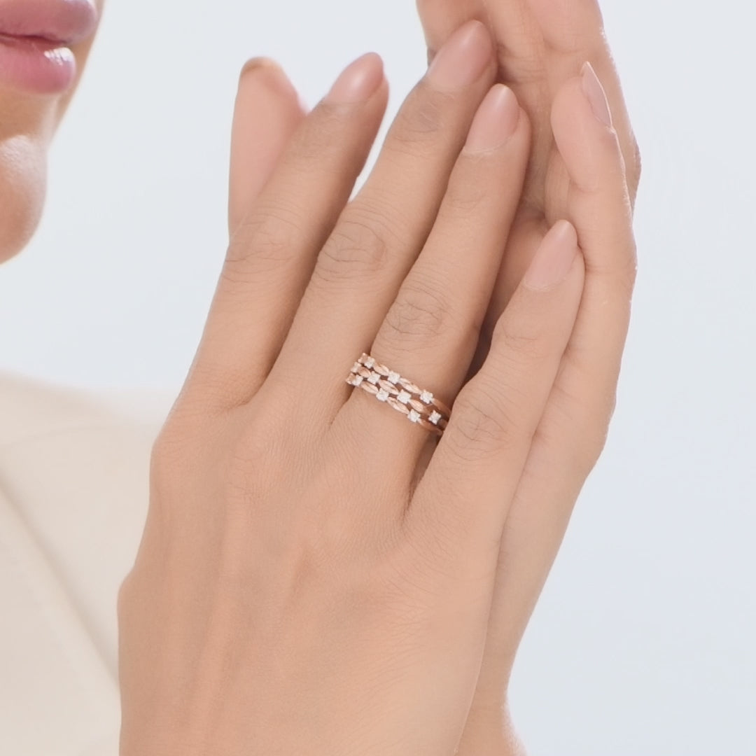 A graceful fusion of charm and elegance, this Sassy Collection ring showcases a cluster of natural diamonds on a sleek rose gold band. Perfect for romantic dinners, festive occasions, or evening outings, it adds a radiant touch of feminine sophistication and timeless allure.