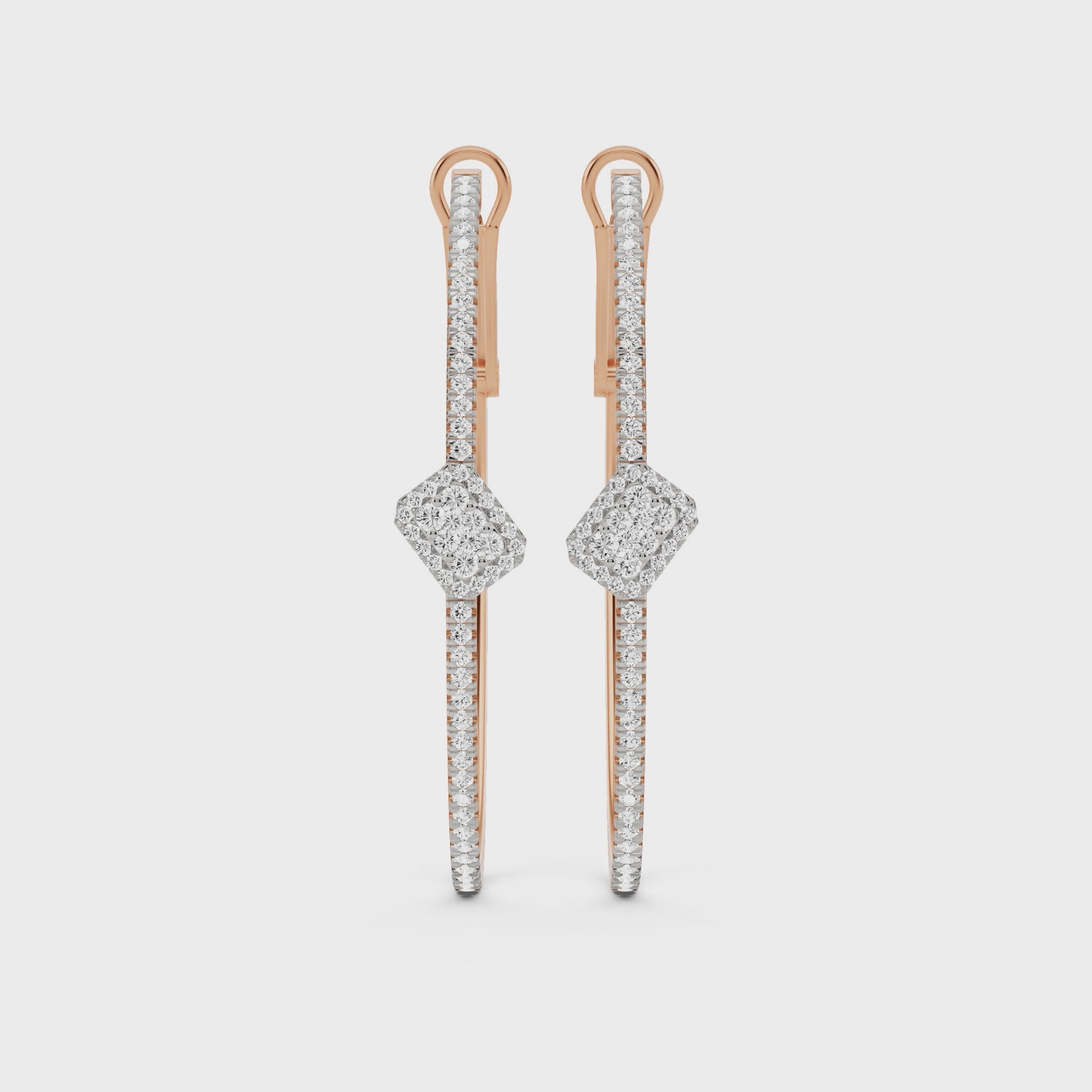 A bold yet sophisticated statement from the Sassy Collection, these rose gold hoops set in 14KT gold with a total weight of 5.620 (5.504 grams net) feature a striking emerald pavé-set horizontal baguette motif at the centre. With 122 natural diamonds and a total diamond weight of 0.580 carats, these earrings are perfect way to elevate any ensemble.