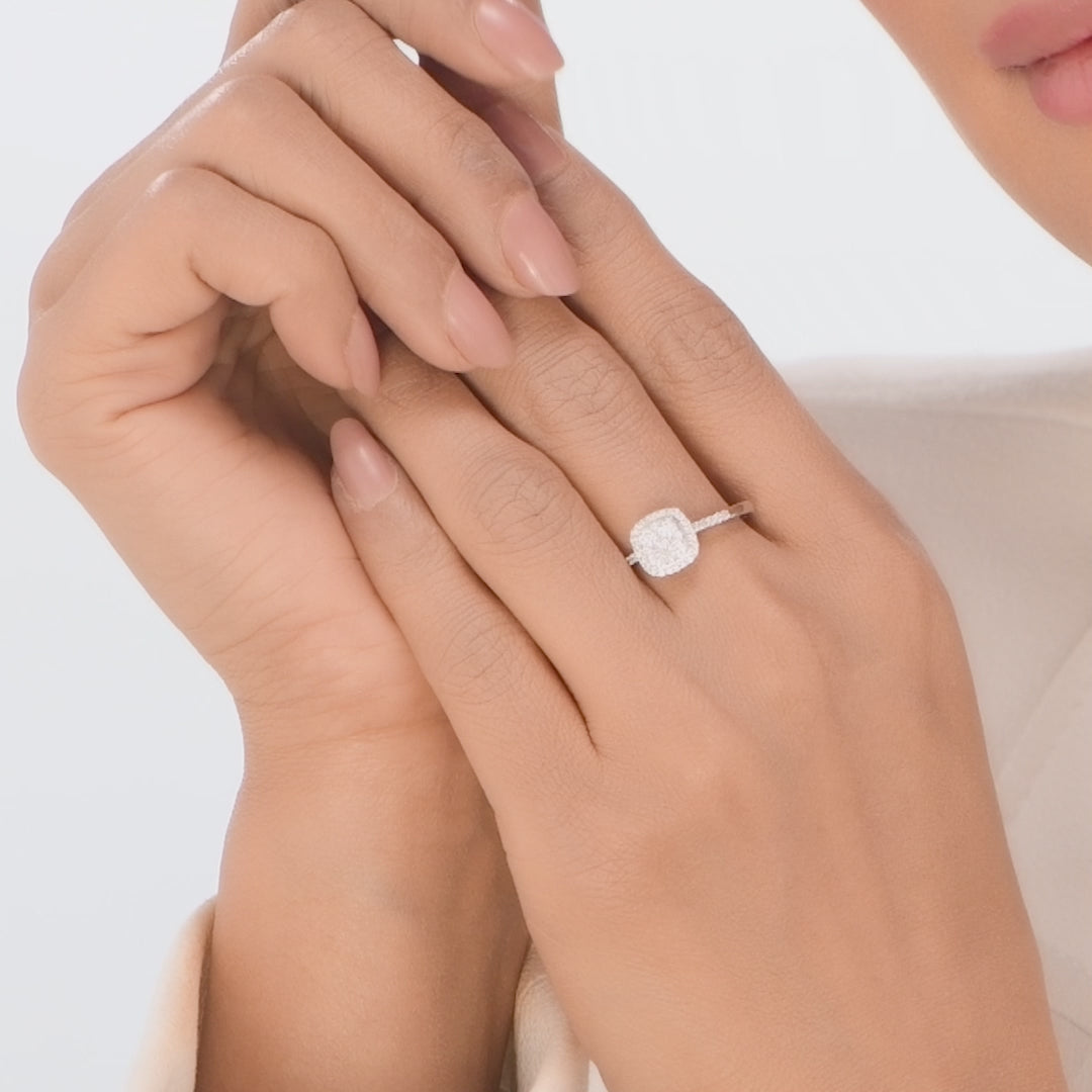 A graceful fusion of charm and elegance, this Sassy Collection ring showcases a cluster of natural diamonds on a sleek rose gold band. Perfect for romantic dinners, festive occasions, or evening outings, it adds a radiant touch of feminine sophistication and timeless allure.