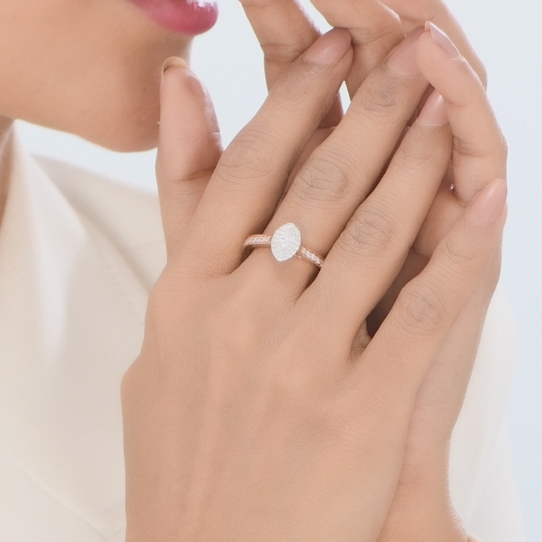 A graceful fusion of charm and elegance, this Sassy Collection ring showcases a cluster of natural diamonds on a sleek rose gold band. Perfect for romantic dinners, festive occasions, or evening outings, it adds a radiant touch of feminine sophistication and timeless allure.