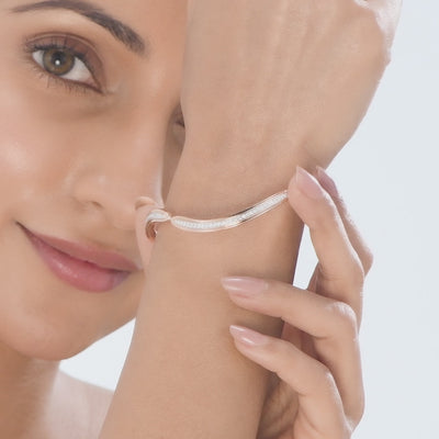 Each piece features a unique detail – a hidden diamond nestled against the wearer's skin. This 0.01 carat diamond is a gift from us to you; a symbol of positivity and timeless beauty, this hidden gem is our special way of connecting with you on a deeper level.