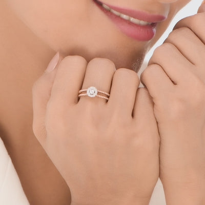 A graceful fusion of charm and elegance, this Sassy Collection ring showcases a cluster of natural diamonds on a sleek rose gold band. Perfect for romantic dinners, festive occasions, or evening outings, it adds a radiant touch of feminine sophistication and timeless allure.