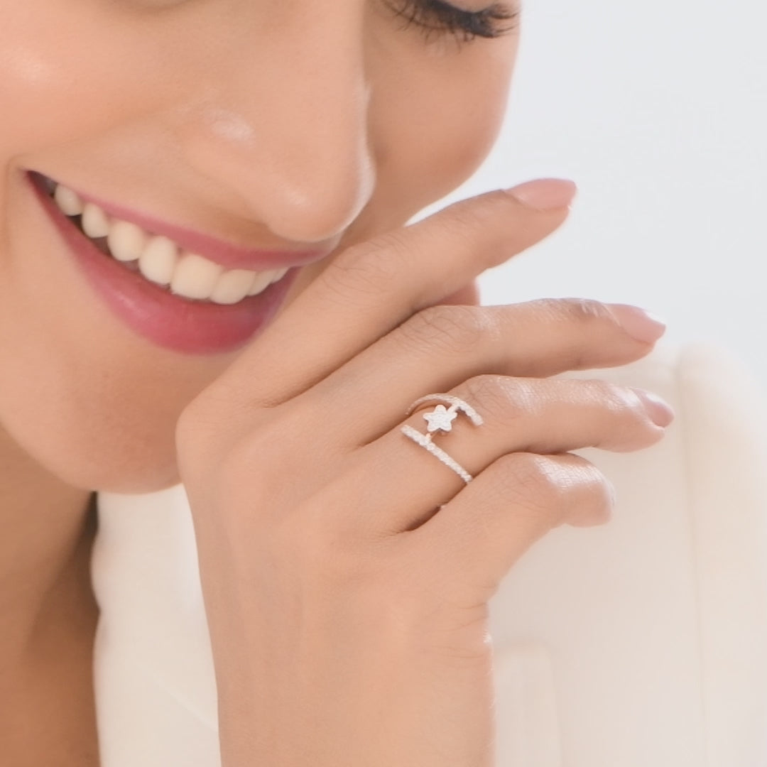 This chic open-curve ring features a sparkling star centerpiece encrusted with brilliant white diamonds. Its flowing, modern silhouette adds a celestial charm—perfect for cocktail evenings, festive celebrations, or adding a radiant sparkle to your everyday style.