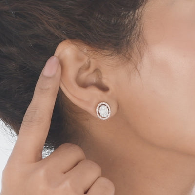 These captivating earrings showcase a sparkling central core surrounded by a shimmering frame of light, offering a look of depth and elegance. They are perfect for elevating your workplace attire, enjoying a weekend brunch, or attending a semi-formal dinner.