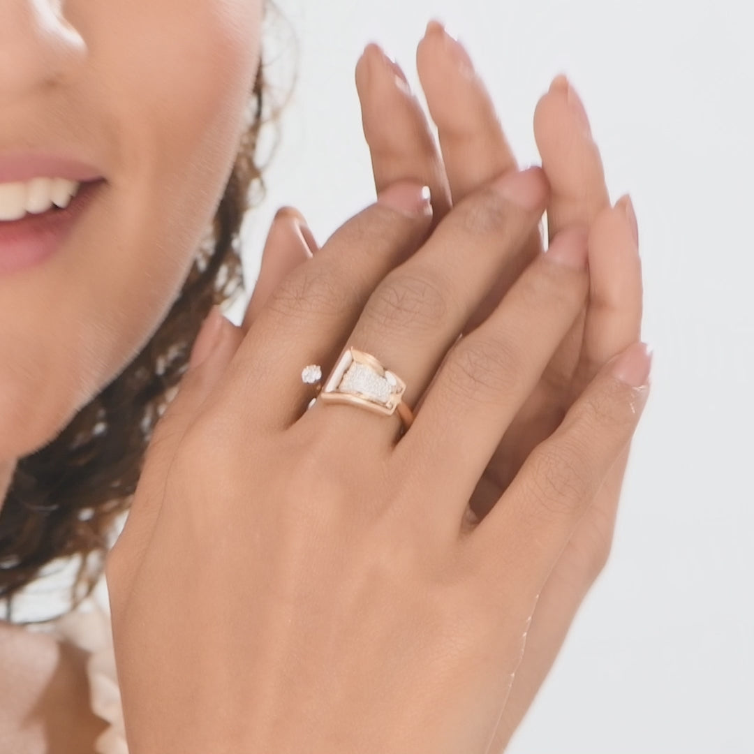 A bold geometric marvel with an asymmetric open design, this ring flaunts a triangular frame paired with sparkling white stones for a modern, radiant edge. Perfect for cocktail parties, art events, or stylish evening gatherings — it’s your statement piece of effortless sophistication.