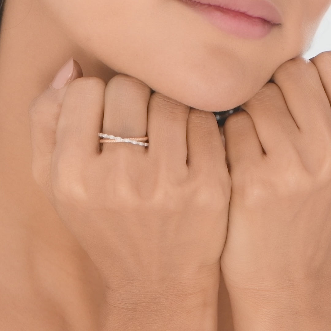 A gracefully twisted band design featuring alternating textures and marquise-shaped white stones that exude subtle brilliance. Perfect for romantic dinners, festive gatherings, or elevating your everyday chic look.