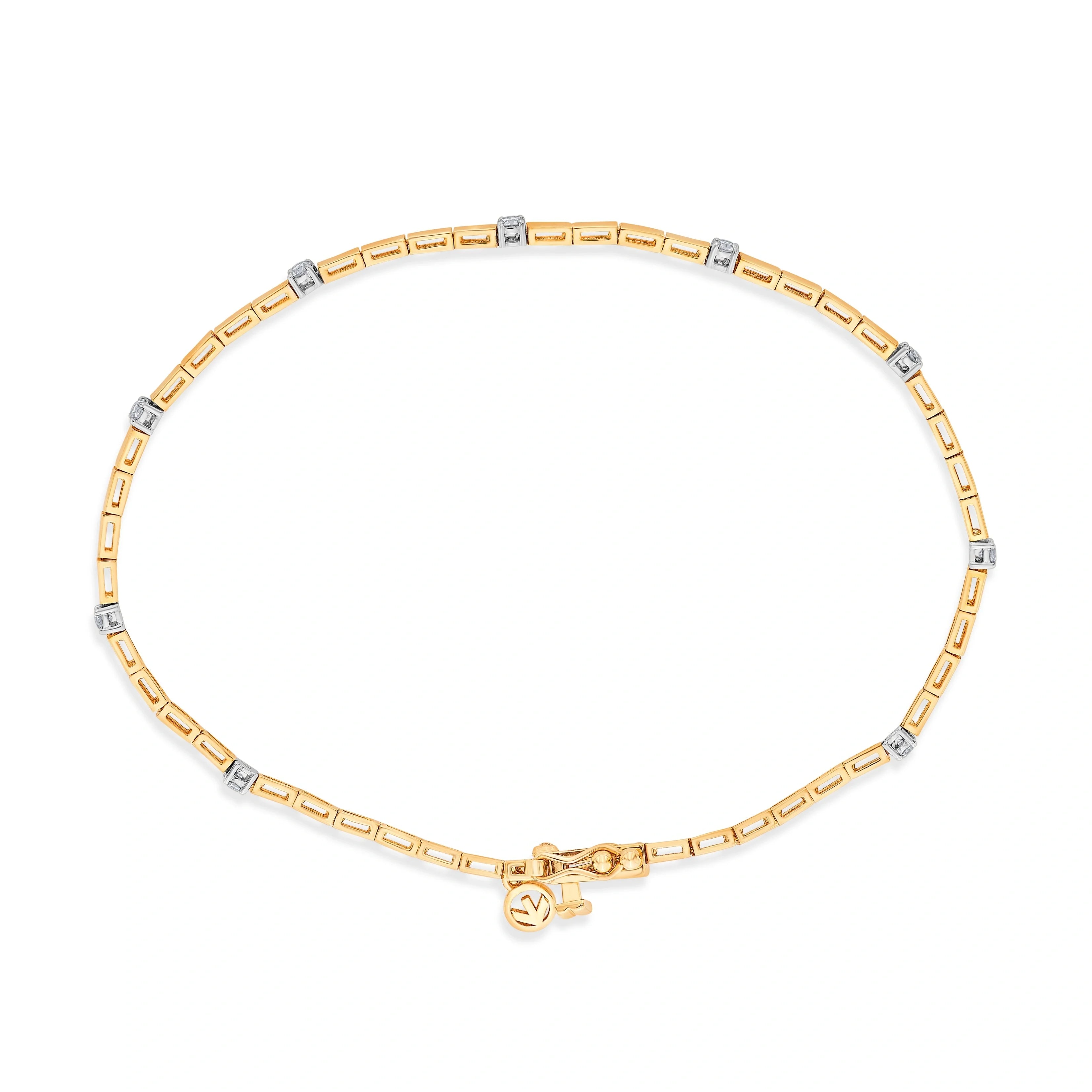 Sleek, subtle, and stunning— this 18 karat gold bracelet from the SOIREE collection blends rose and white gold into a refined two tone gold bracelet. With 10 natural diamonds totaling 0.311 carats and a gross weight of 4.908 grams (net - 4.846 grams), this is a versatile, minimal piece designed to shine softly. Your go-to for layering or solo sparkle.